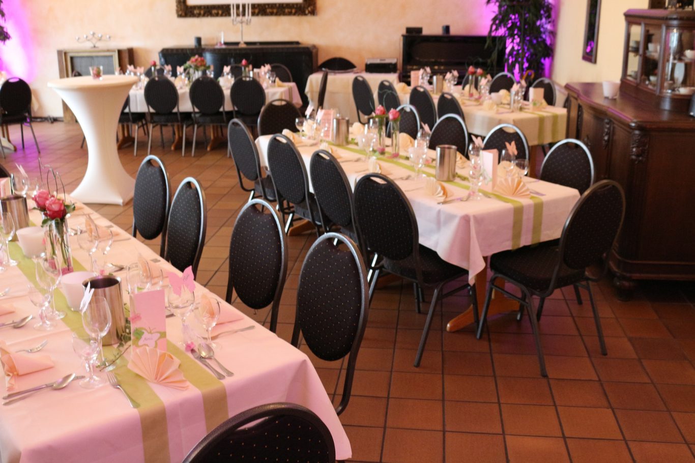 Auch der Wurfstrauß spiegelte den Look des Brautstraußes wider – ideal abgestimmt für emotionale Momente. Die Tischdekoration griff das florale Thema perfekt auf und verlieh den Räumen eine warme, romantische Atmosphäre.