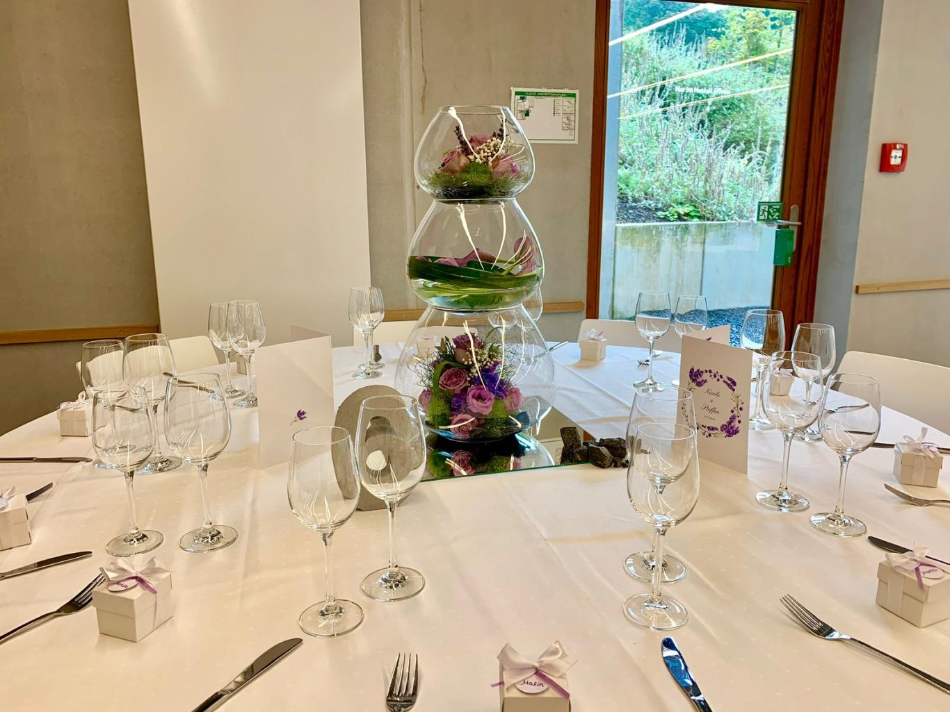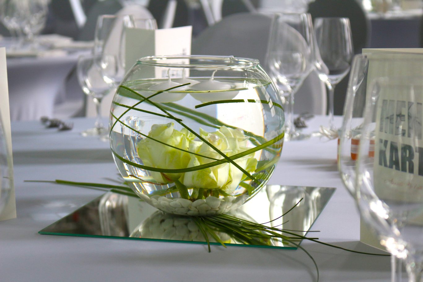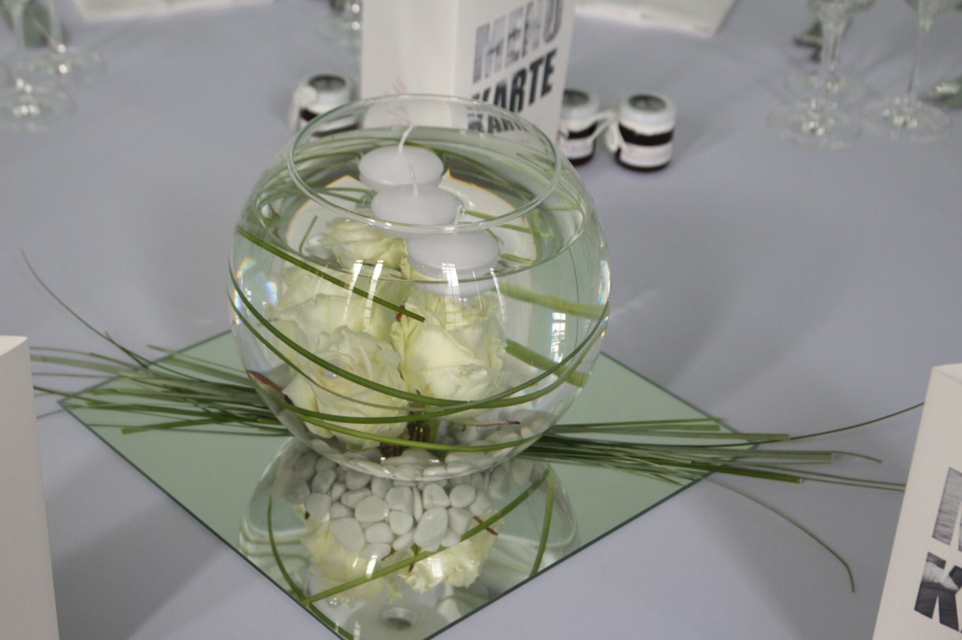Ein kreatives Detail: die besonderen „Tischkarten“, eingebettet in das florale Konzept – individuell, stilvoll und absolut modern.