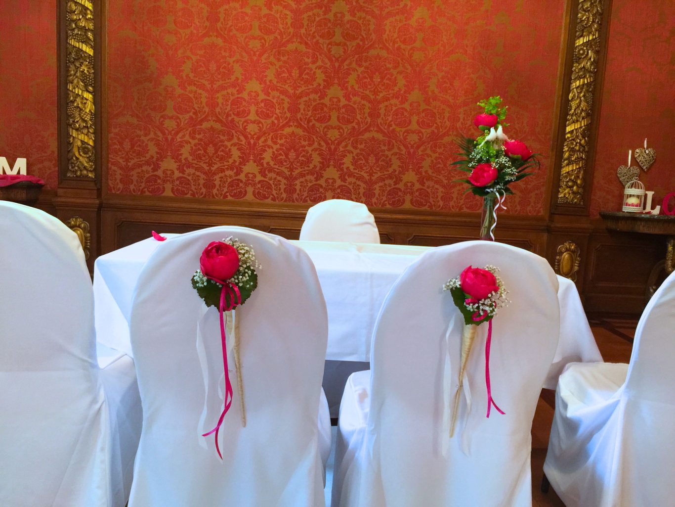 Diese klassische Hochzeitsdekoration zeigt, wie sehr die Kraft der Symbole und die Schönheit floraler Gestaltung miteinander verschmelzen können.